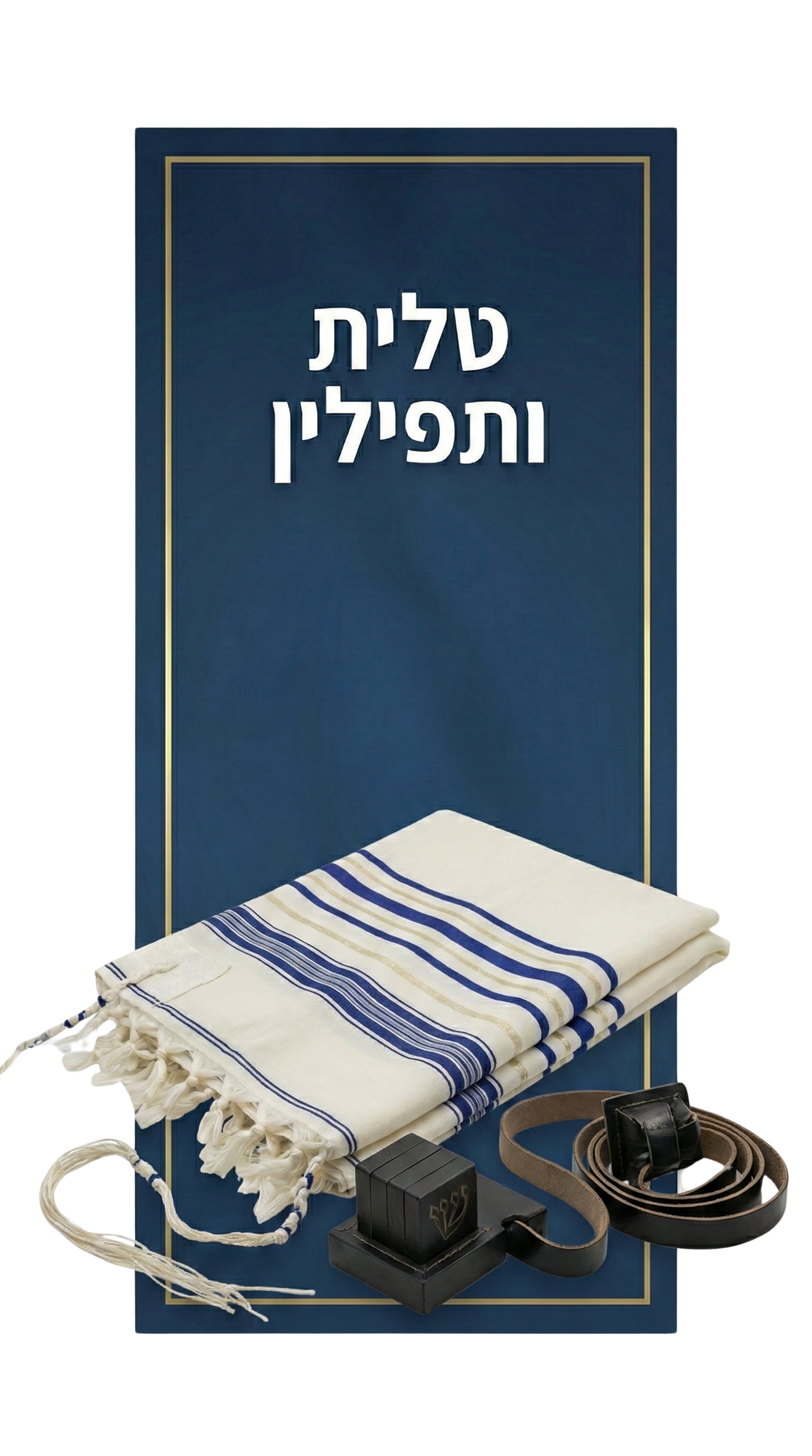 טלית חתנים בצבע כחול בעיצוב מהודר וקלאסי